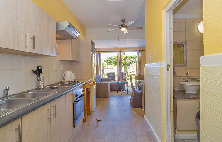 Relax in one of our superior 2 bedroom ground floor apartments. The apartment has a double or 2 ¾ beds in the main bedroom, a cabin bed in the 2nd bedroom and a sleeper couch in the lounge.