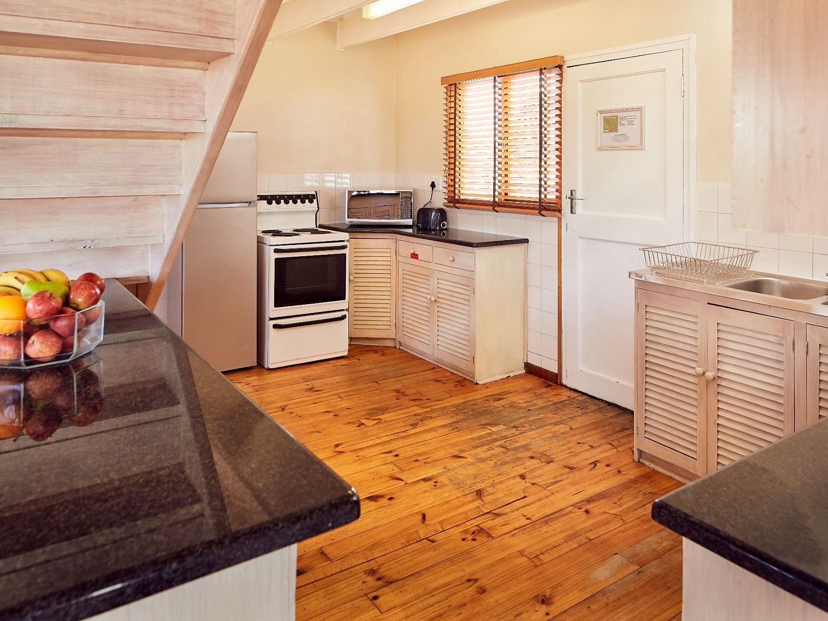 The fully-equipped, self-catering kitchen includes a full-height fridge and freezer, 4-plate electric stove and oven, toaster, microwave and electric kettle.