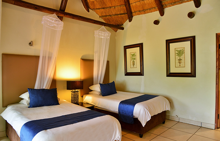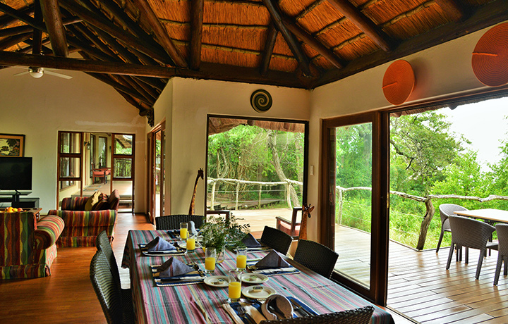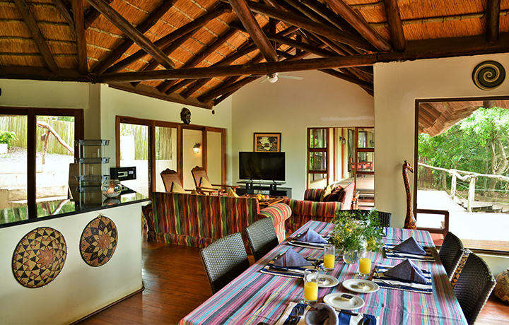 It doesn't get any better than our four bedroom self-catering lodge accommodation near St. Lucia, with extensive views over the lake and all four bedrooms opening up onto the deck area. All four rooms are en-suite. Two are fitted with queen-size beds and the other two offer two ¾ beds in each. This accommodation option is also equipped with a well-equipped open-plan kitchen, lounge and dining room.