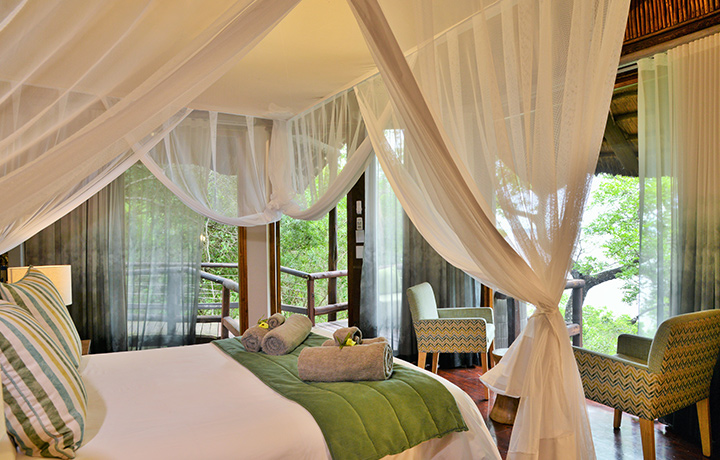 A chalet made for two. Our double chalets are tucked among the surrounding trees and come with queen-sized double beds, en-suite bathrooms and private decks overlooking the lake. Keep your sundowner drinks cold in the mini-bar fridge, and enjoy a hot cup of coffee in the morning as you wake.