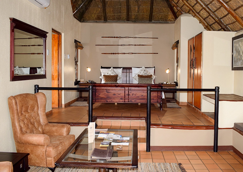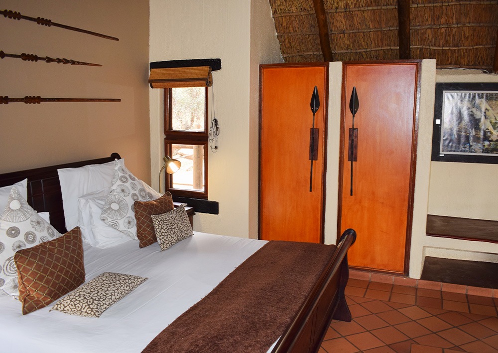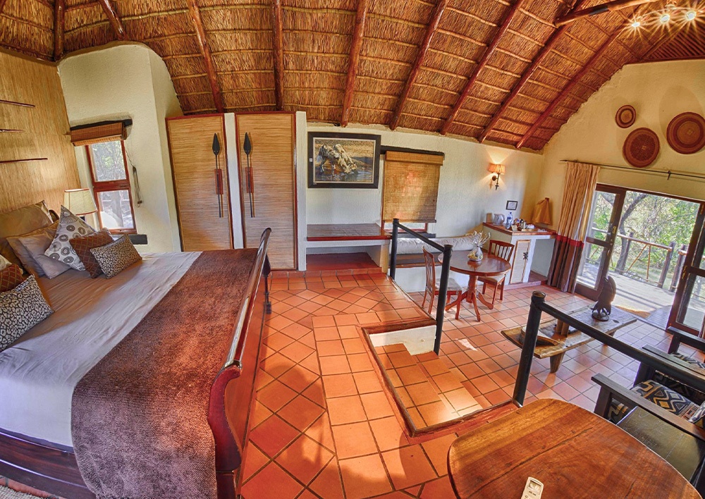 Looking for something a little more lavish? Bed down in the luxury chalet at Madikwe River Lodge. This unit features a private lounge area leading out to a private balcony overlooking the Groot Marico River and comes with an en-suite bathroom with an additional outdoor shower.