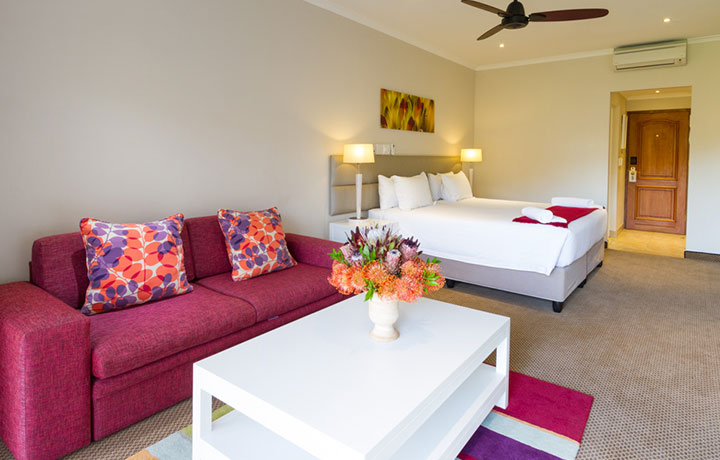 Choose the ground level garden units or try a little higher up with a balcony. These suites offer a king-size bed that can be converted into two single beds by request. It comes with an en-suite bathroom and is a great option for families as it can accommodate two adults and two children.